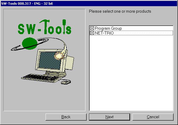 Start the installation program SWXXX0YY.EXE and make sure to select the product NET-TRIO.