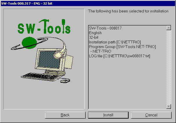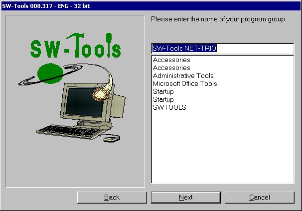 The program group is by default set to SW-Tools NET-TRIO by may be changed.