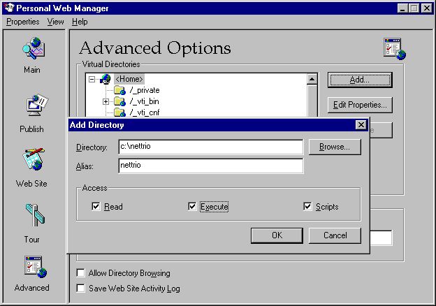 For example, if TRIO is installed on the same server as NET-TRIO but in directory C:\SWTOOLS you may setup a user named TRIO as shown here.