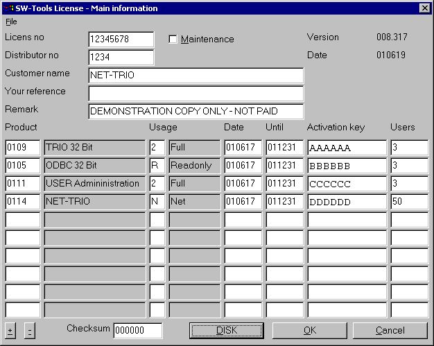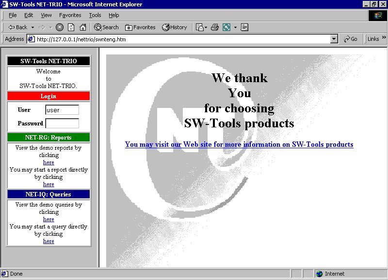The user administration is as mentioned earlier setup the first time NET-TRIO is installed. It will have no effect on any current SW-Tools TRIO installation.