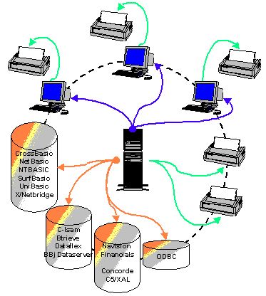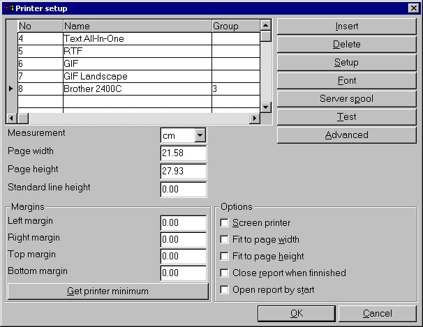 A browser solution will requiere different printersetup than a Windows application, NET-PA enables you to setup these printers on the server for output to network printers or HTML/PDF files.