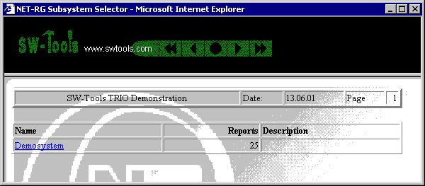 TRIO RAPGEN is able to produce print output in HTML or GIF form fittet for browser output, as NET-RG also PDF print for ADOBE Acrobat reader is supported together with a very powerfull way of generating HTML pages, not only as print output, but also as respond to any CGI-call enabling you to easily write and modify your one CGI scripts.