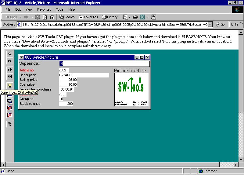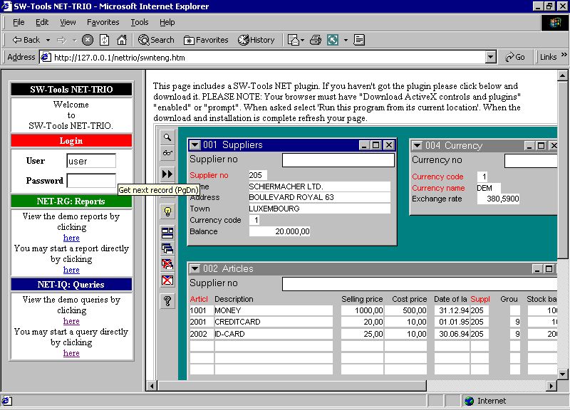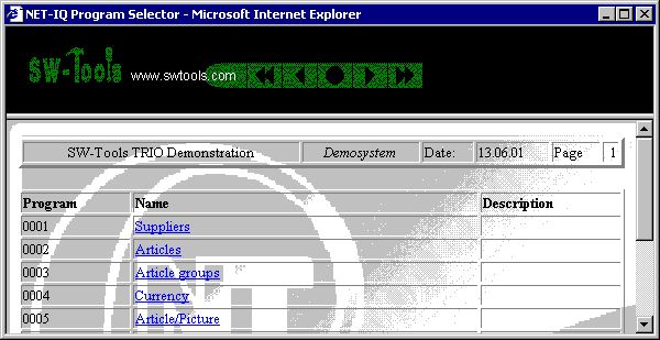 SW-Tools NET-TRIO provides you with server driven applications to execute any report, query or data entry program designed with SW-Tools TRIO.