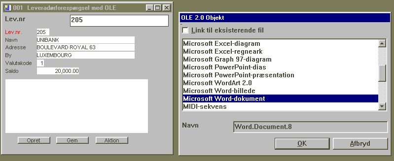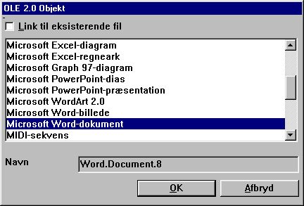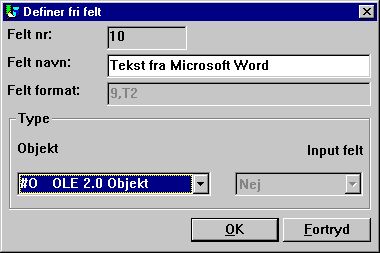 - Et nyt felttype OLE er tilføjet frifeltdialogen