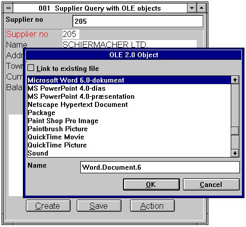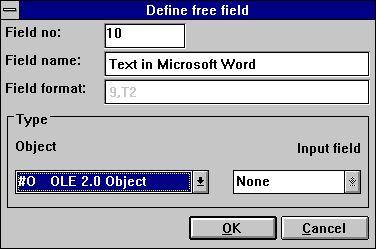 - Un nouveau type de zone OLE additionné au dialogue de la zone libre